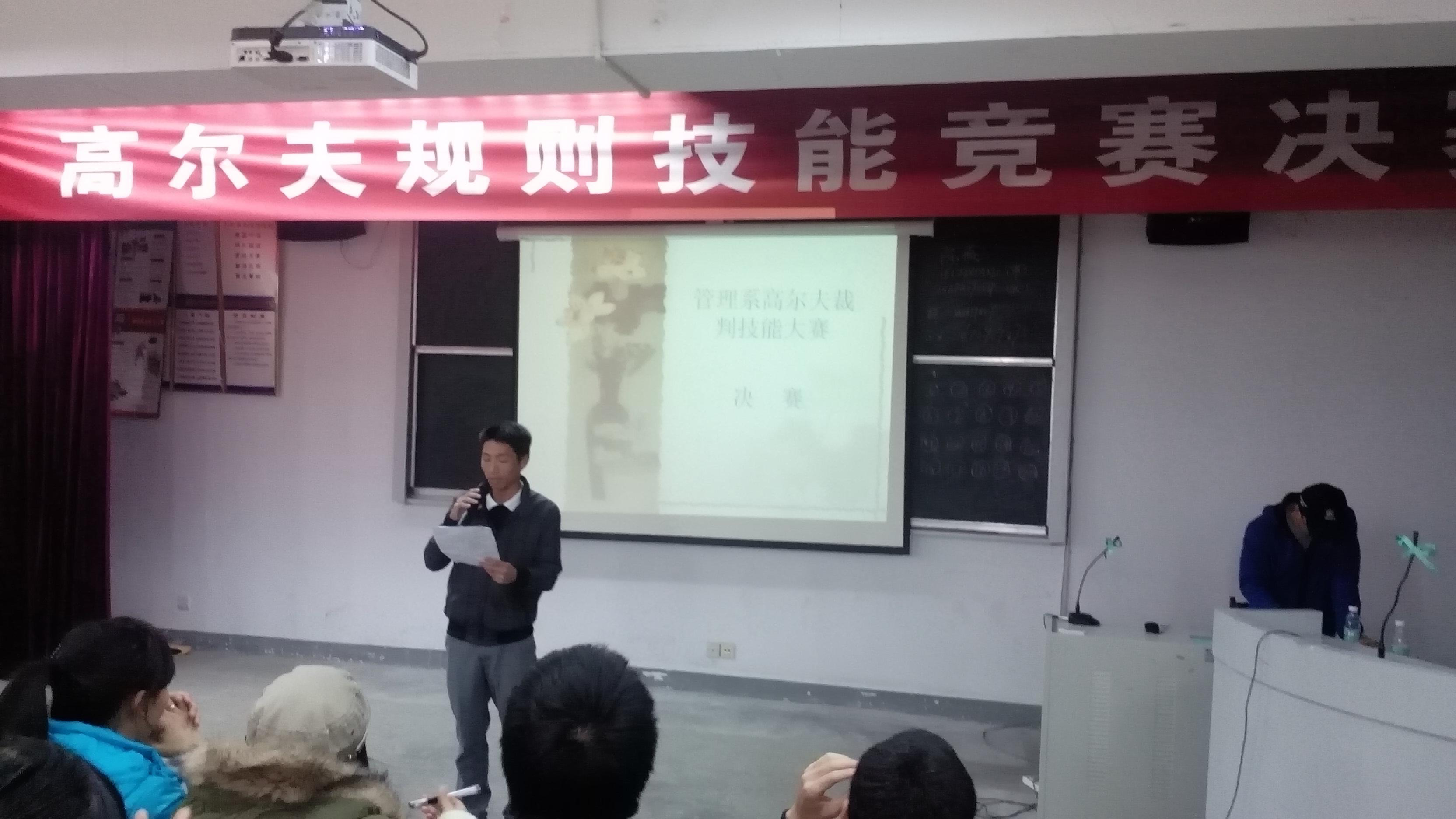 12月11日,管理系高尔夫规则技能大赛在一教学楼一楼多媒体一教室圆满结束。其中管理系工商企业管理2班的同学获得此次比赛的第一名。运动系12级运训3班;12级运训2班两个班级并列第二名。此次技能大赛是在学校教务处的领导下,由管理系具体承办,前后筹备时间长达一个多月。
